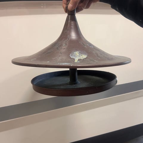 Brugt kortvarigt i institution i Vejle midtby, hvorfra den også skal hentes. Er gravet op af sandkassen, så der sidder støbeklodser under den.
