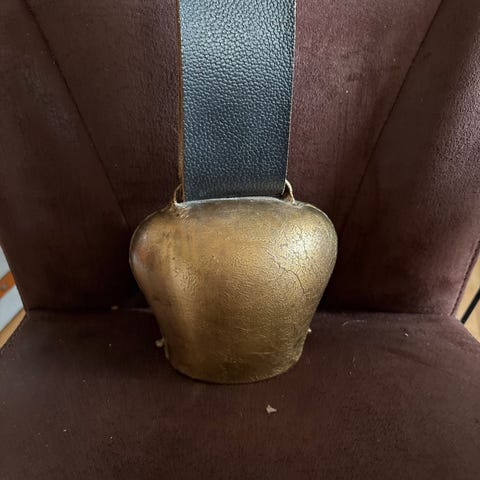 Kobjælde, Messing m/ læderrem, 100 år gl.