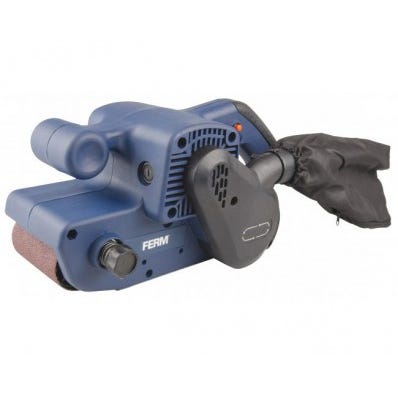 Ældre båndpudser, men stadig fuldt funktionsdygtig og god til diverse slibeopgaver og gør-det-selv-projekter. Rullen i den ene ende er 5 cm bred og i den anden ende 8 cm. Det slibepapir, der er på nu, er over 5 cm bred, så den maksimale båndbredde ligger et sted mellem 5 og 8 cm. Maskinen bruger kraftstik og kan justeres til slibepapir af forskellig længde. Der medfølger ekstra slibepapir, og det er nemt at købe mere til modellen.