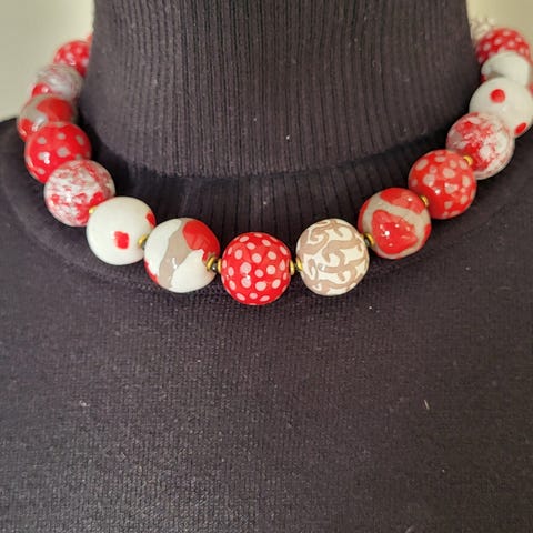 Halskæde, andet materiale, Kazuri, Super flot Brun/Beige Kazuri halskæde 56 cm lang, brugt 2 gange