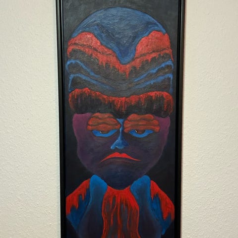 Billede, Martin Gam, Kunst på aluminium kaldet Hope af Martin Gam, 1 ud af 5. Str 60 x 30 cm. Vundet i Kunstforeningen på mit arbejde. Vurderet hos Galleri Hjorth i Horsens til 3000. Sælges for 1000. (Er ensartet sort i bunden, men lyset fra hoveddøren skinner ind på billedet).