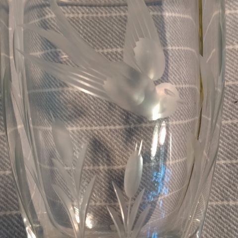 Lille Vase Med Fugle, Smuk lille klar glasvase med fugle.