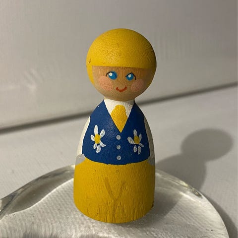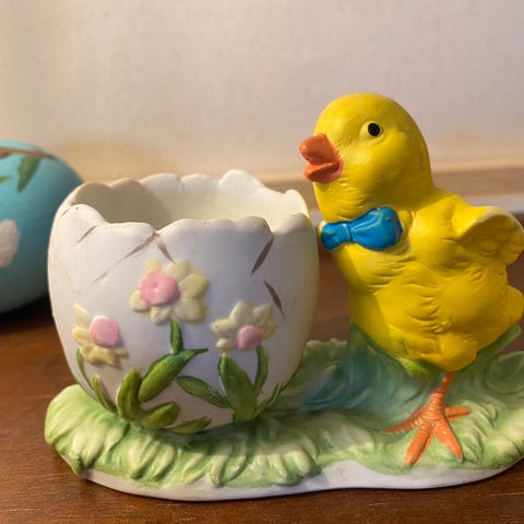 Påskestage og fuglerede, Retro, Ældre påskestage, er ret sikker på den er fra Eigenbrod eller Anne Beate. Højde 11,5 cm. Reden er af ældre dato. Stagen har aldersrelaterede brugsspor.