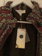 Vest, str. 38, Eva go Diva, Mønsteret/rød/hvid/brun, Bomuld/polyester, Ubrugt, Vest, der er kan bruges over en sweater/jakke.Aldrig brugt.Længde 104 cm., bredde over skulder 64 cm.,