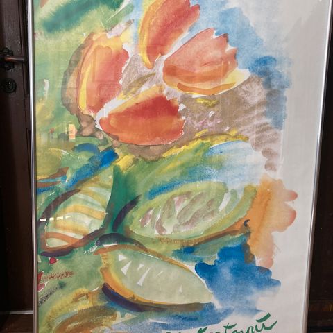 Plakat, Ole Kortzau, motiv: Blomster , b: 64 h: 80, Flot plakat af Ole Kortzau i indrammet mørk træramme.