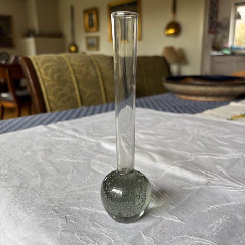 Orkidevase, Svane, Enkelt blomst er nok. Når formgivning bryder normer. Put en kanneleret søjle på en glat kuppel og forsyn den med en hank i jugendstil. Art Deco når det er bedst.