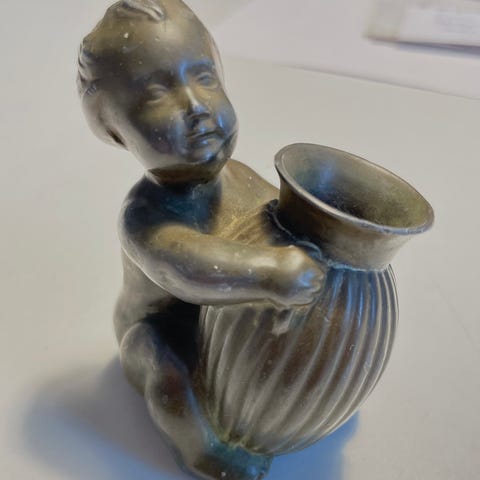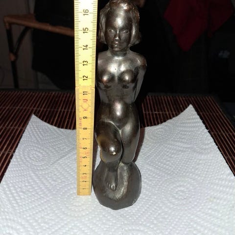 Figur, Just Andersen, motiv: Afklædt siddende kvinde, på sten. Dessin 1871. Patineret diskometal. Højde 22,5 cm, Bredde 13 cm.