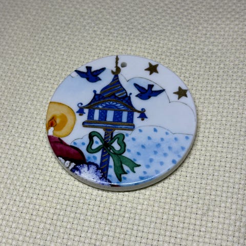 Smukkeste og meget fin jule charm - krone i guld med original satinbånd. Med original æske som også er helt intakt.