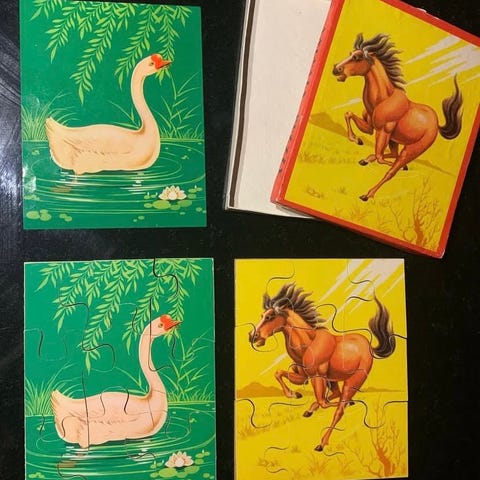 Puslespil, Gammeldags puslespil, Gammeldags puslespil hvor du kan tage det hele op og lege med og pakke det fint væk igen. Nostalgi for alle pengene