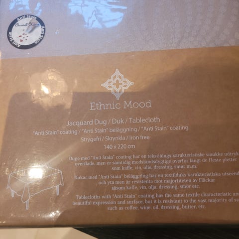 Dug , Ethnic Mood, Ethnic Mood Jacquard dug i blå med "Anti stain" coating og samtidig er den strygefri.