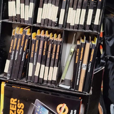 Har også nogle glas til en masse skærme samt oca lim som følger med
