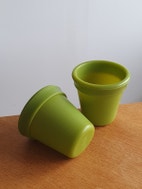2 grønne silikone potter / krukker til eksempelvis krydderurter på køkkenbordet eller på spisebordet. De er vandtætte. Fra zone Danmark