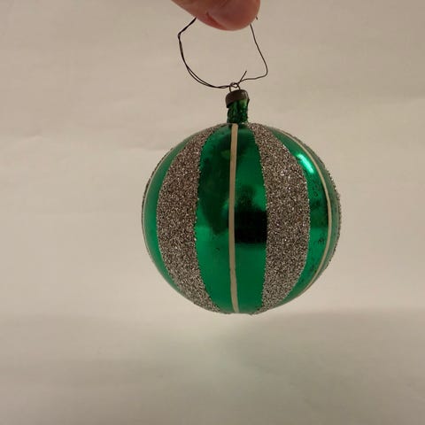 4 gamle juletræskugler i sølv. Den farve ring om den fremstår rød på 2 af dem og lidt mere orange agtig på to andre. Måske er det bare patina der har påvirket farven. De er iøvrigt hele og fine. Jeg sender gerne godt indpakket mod porto kr. 50.