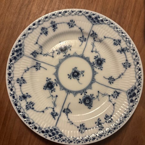 Porcelæn, Tallerken frokosttallerken , Royal Copenhagen, Riflet musselmalet