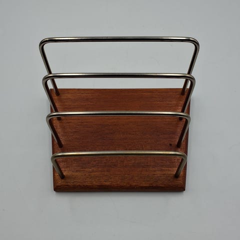 Andre samleobjekter, Smuk Teak og Messing Papirsholder, Elegant og smuk Papirholder til kontoret lavet i teaktræ og med smuk messing kunst.