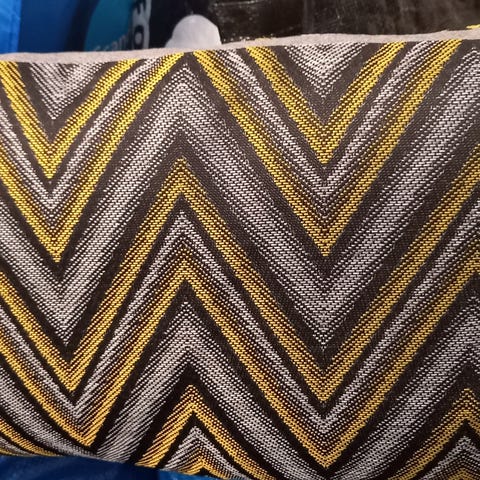 Sofa pude , Cam Cam, Pude i Cam Cams signatur quilt mønster - i en fersken farve. Fra røg- og dyrefrit hjem. Den måler ca.60*40cm. Det har kun været en pynte pude og derfor sparsom brugt. Nypris var 499kr.