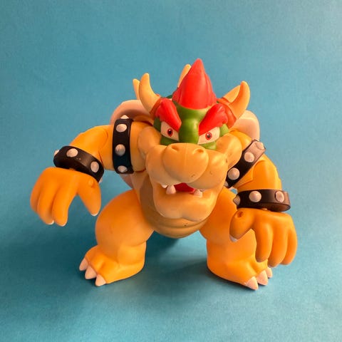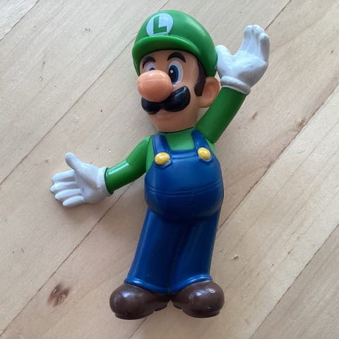 Super Mario, Luigi, Bowser, Princess Peach, 14 lejetøjs figurer + a question block, hovedsagelig fra McDonalds, nogle af dem er stadig i indpakning.