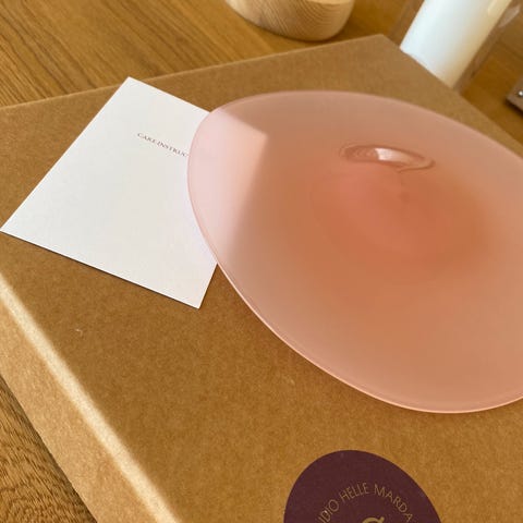 NB bemærk det smukke røde spil inde i glasset, der ændres i forhold til lyset og hvordan den vendes