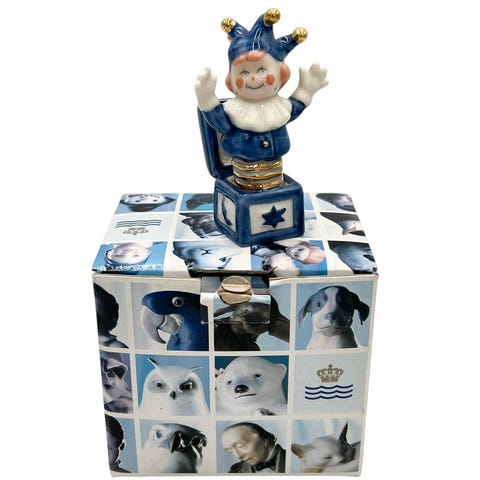 Nar I Æske Figur Sven Vestergaard, Royal Copenhagen, Nar i æske, designet af Sven Vestergaard for Royal Copenhagen. Den er fra serien Toys.