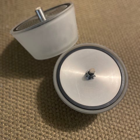 Olielampe, 2 nye Menu olielamper. De har aldrig været i brug kun stået som pynt glas Frost farvet og stål og gummi kant. Diameter 14,5 cm højde 10 cm. Pris pr stk 100 kr. Se også mine andre annoncer. Hv123