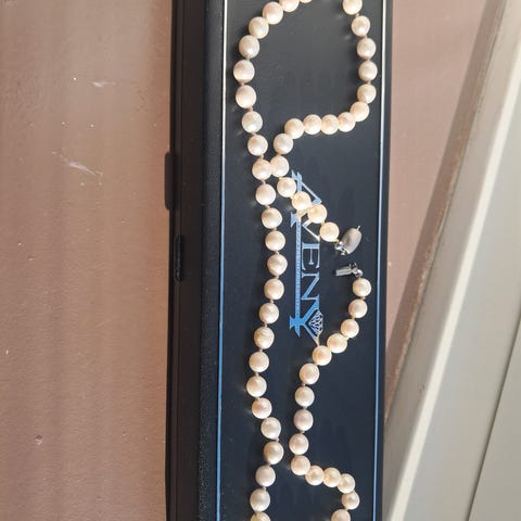 Smykker og sten, Perlehalskæde, Meget fin perlehalskæde som er fra ca. 1970, med et smukt sølv lukke med en perle i midten.