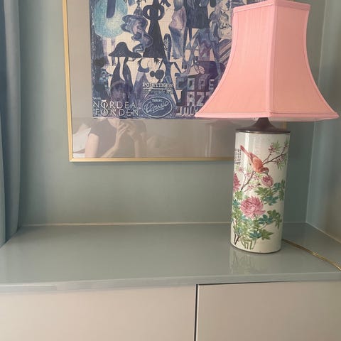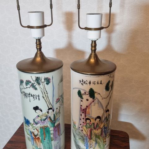 Anden bordlampe, Kinesisk hattelampe, Kinesisk hat-stand lampe, antik. Den er kommet her til med min morfar der sejlede i hele verden i 50/60. Den er stor, tung og så flot.