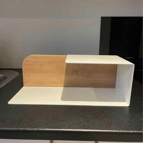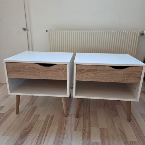 Ilva natbord i hvid lakeret højtrykslaminat med massive egetræ ben (perfekt stand aldrig brugt)