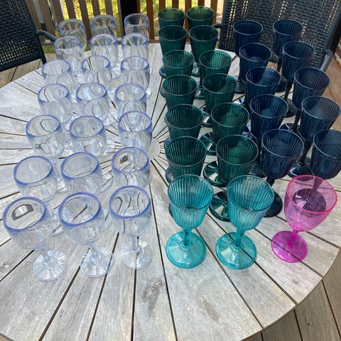 Der er 4 spyd til et glas eller en dåse - og 2 til et vinglas.