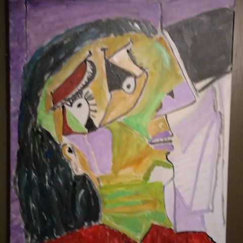 Akrylmaleri, Ole Dalsgaard, motiv: Abstrakt, stil: Abstrakt, b: 40 h: 40, Akryl maleri malet på lærred . Motiv : frit efter Pablo Picasso