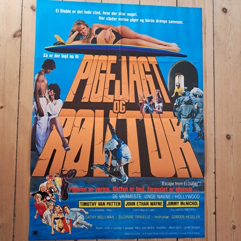 Flot farverig illustration på papir, der har reklameret for filmen i dansk biograf. Plakaten har de originale folder og har små skader fra at have været udstillet.