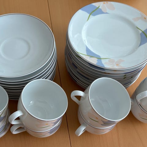 Superflot stel med stilistisk mønster af Grå Orkidé fra Bing & Grøndahl. Stellet er fra 1980-1990'erne. Det fremstår i meget flot stand uden synlige brugsspor og naturligvis helt, 1. sortering. Jeg sender gerne godt indpakket mod betaling af porto kr. 50.