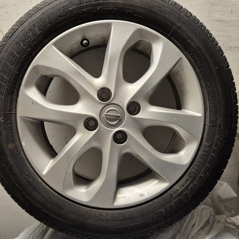 Alufælge, 17", andet mærke, krydsmål 5 x 114,3, ET 47, vinterdæk, Bridgestone, fælge med dæk, Hej sælger disse Nissan fælge størrelse er 215/60R17