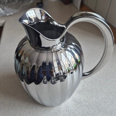 kande eller vase, Lækker kande i massiv messing. Dens rene linjer får den til at passe perfekt ind i den danske stilrene æstetik. Kan nemt matche Georg Jensens ikoniske designs.