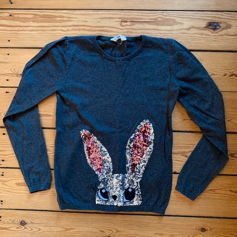 Bluse, Kanin. Poncho, H&M, str. 134, Bluse/poncho med kanin på skulderen.