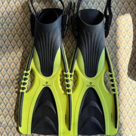 Svømmeudstyr, Svømmeudstyr sælges samlet for 300kr. For køb af enkelte ting, så spørg for pris. Finner er str 35-36, svømmesnorkel (der skal måske lige bruges en lille strips til at holde pandepladen lidt mere stabil), og et net til at have det i.