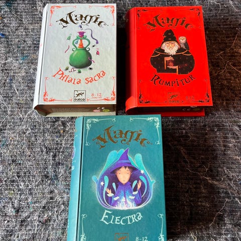 Ubrugt Djeco Magic Electra spil som leveres i fin kasse, der lukker med magnet og ligner en rigtig flot tryllebog.