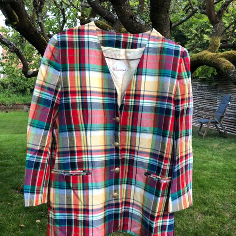 Vintage blazer med skulderpuder, der sidder flot. God men brugt - aldersrelateret slid. Mærke: Anne Sofie. Str. 36.