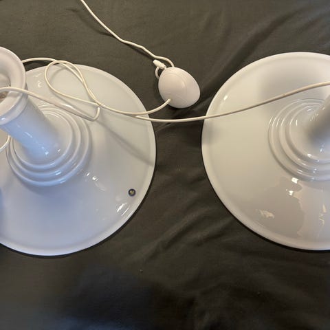 Sidse Werner, Mythos , pendel, 2 Mythos pendler i opalglas D 34 cm fra Holmegaard Glasværk, hele og uden skår.