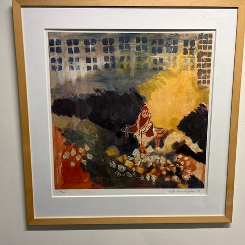Litografi, J Thygesen, motiv: Slangehus, b: 66 h: 68, Flot, træramme i sølv (glarmester)