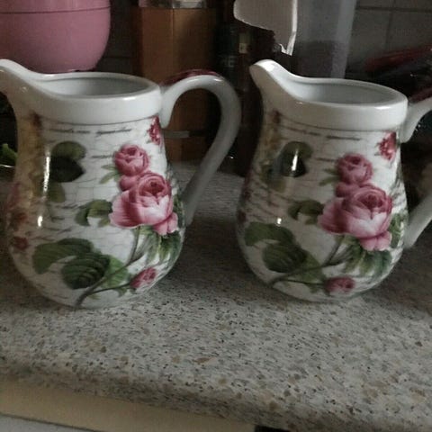 Porcelæn, Kande, Højden på den store kande er 18 cm og på de to andre kande er 9 cm.
