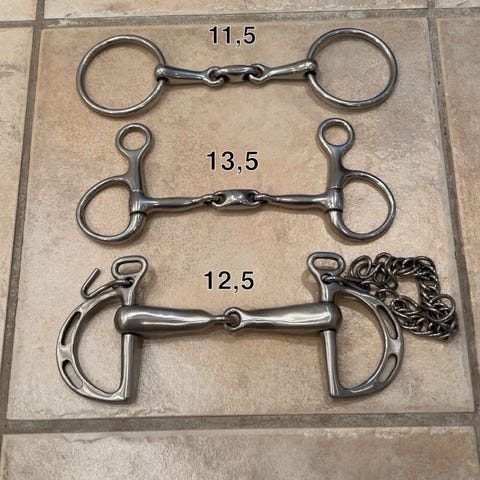 Bid, Mange forskellige bid, Hjælp os med at rydde op. Vi har simpelthen alt for meget rideudstyr liggende, som aldrig bliver brugt. Vi har haft alt fra føl og lille welsh pony til friser gennem tiden, så der er mange forskellige størrelser på det hele.