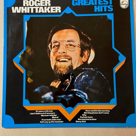 Compilation album med Roger Whittaker, som var umådelig populær i Danmark i 70’erne. Han er især kendt for hans fortolkninger af datidens populære hits med hans fine guitarspil og dybe behagelige baryton vokal. Og så var han en sand mester i at fløjte, bare prøv at hør hans signatursang ”Mexican Whistler” og bliv overbevist.