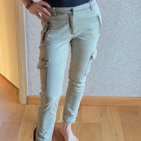 Bukser, NÜ, str. 42, Militær i grøn / brunlige farver nypris 700, 75% polyester 20% polyester 5% elastan, Næsten som ny, Rigtige fine bukser i “militær look” med brunlige farver i str. Large - og jeg vil mene det svarer til 42 i den her model. Der er meget elastan i så de sidder rigtig godt, men jeg har bare ikke rigtig fået dem brugt.