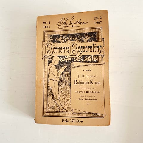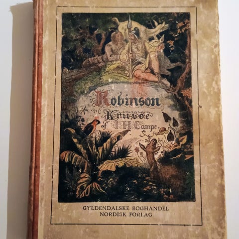 ’Robinson Kruse’., J. H. Campe., genre: roman, Udgivet af Chr. Erichsens Forlag, 1909. 251 sider. Marmorerede indsatsblade. Illustreret med 43 tegninger af Poul Steffensen. Indbundet i komponeret hellærred, med front og rygtitel i guld.