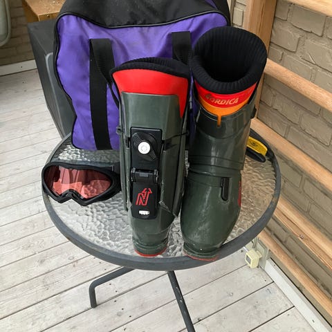 Skistøvler, Nordica, str. 300 mm, Svarer til str 38. Incl støvletaske. Skitøj str. 185 cm. Samt nyslebne Head alpinski