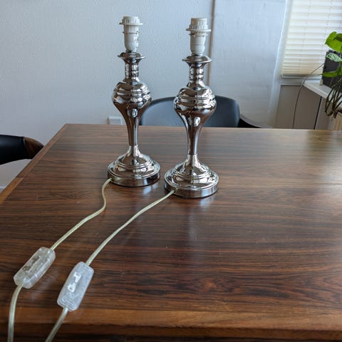 Lampe, 2 stk cremehvide lamper med mat overflade sælger for 150 kr pr stk.