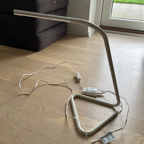 Hvid Tertial skrivebordslampe fra Ikea. Har små brugsspor som kan ses på billedet, men virker fint. Nypris 119 kr. Hentes i Håstrup eller sendes mod betaling. Afhentning i Odense kan også aftales.