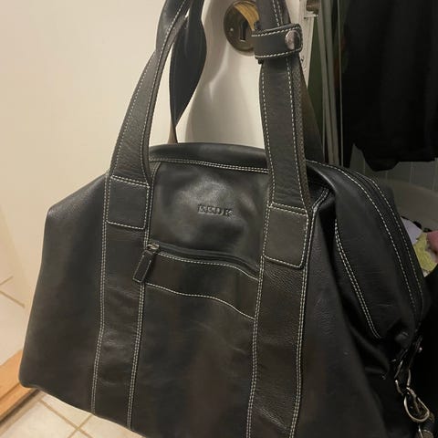 Weekendtaske, KKDK, b: 20 l: 52 h: 30, Sort læder rejsetaske med rummeligt hovedrum, indvendig lynlåslomme og en slip-in lomme. Robuste bærehåndtag og aftagelig justerbar skulderrem.
