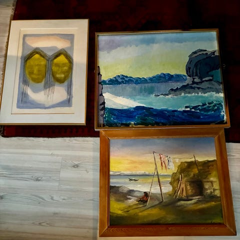 Blandede medier, Karl Peter Andersen, stil: Realisme, b: 29 h: 20, Grønland. Mixed media. Karl Peter Andersen. To personer i jolle. Signeret Karl P Andersen 95. m ål er motivmål. Fin stand. Indrammet i passepartout.Kan sendes.