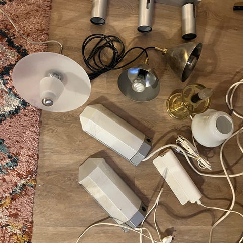 Lampefod, ABO Randers, Den ene lampefod har malerpletter flere steder og lidt løs i fatning og begge to har ridser hist og pist.